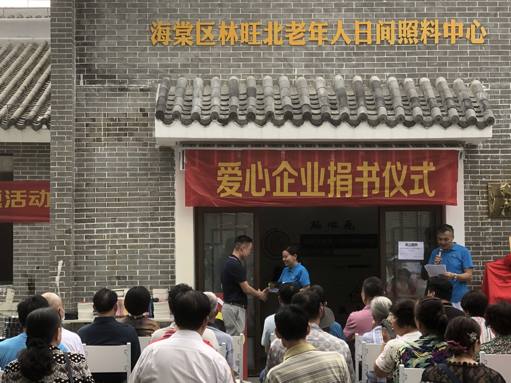 三亞綠盾環保科技有限公司關愛老人,熱心公益,為為海棠區林旺北老年人日間照料中心捐贈書籍。